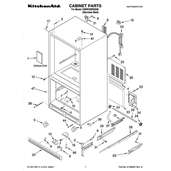 This toe grille assembly installs across the bottom front of your refrigerator—often called the toe kick or kickplate—to protect internal components while allowing proper airflow. Replace a cracked or missing grille to restore a clean, finished look and correct base ventilation.