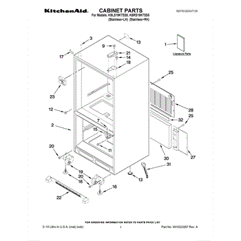Parts for Kitchenaid KBRS19KTSS5: 01 - Cabinet Parts