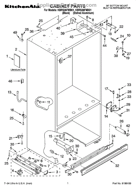 Parts for Kitchenaid KBRS36FMB01: 01 - Cabinet Parts