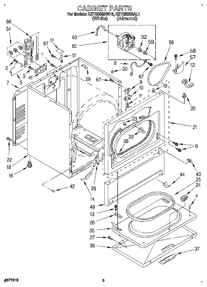 Front panel for dryers. Replaces cracked, dented, or damaged exterior panels. Installs on the front of the cabinet to restore appearance and structure.