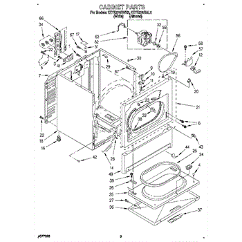 Fits all Whirlpool-made dryers (Whirlpool, Kenmore with prefix 110, Roper, KitchenAid, and Estate). Matching belt 341241 and rear support rollers 349241T. Whirlpool dryer repair manual 677818L.