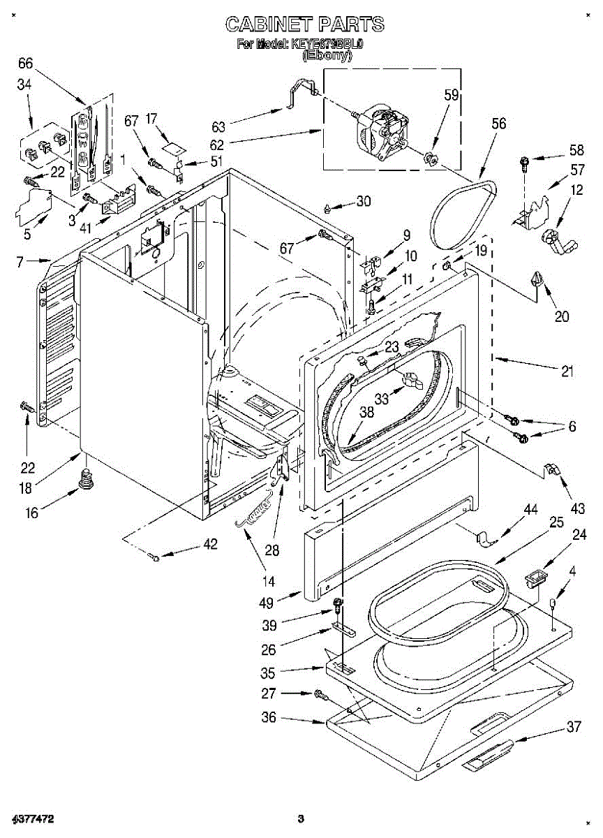 Seals the gap between drum and front panel to retain heat and reduce friction. Replace if worn, torn, or causing noise. Confirm fit with your model.