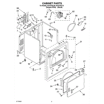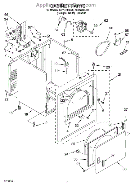 Dryer outer cabinet that houses internal components. Replace if your cabinet is rusted, dented, cracked, or damaged, compromising structural integrity.