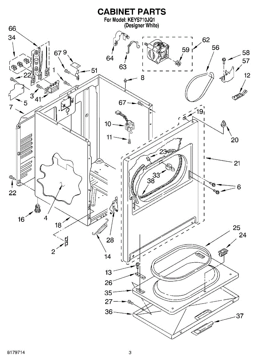 Dryer outer cabinet that houses internal components. Replace if your cabinet is rusted, dented, cracked, or damaged, compromising structural integrity.