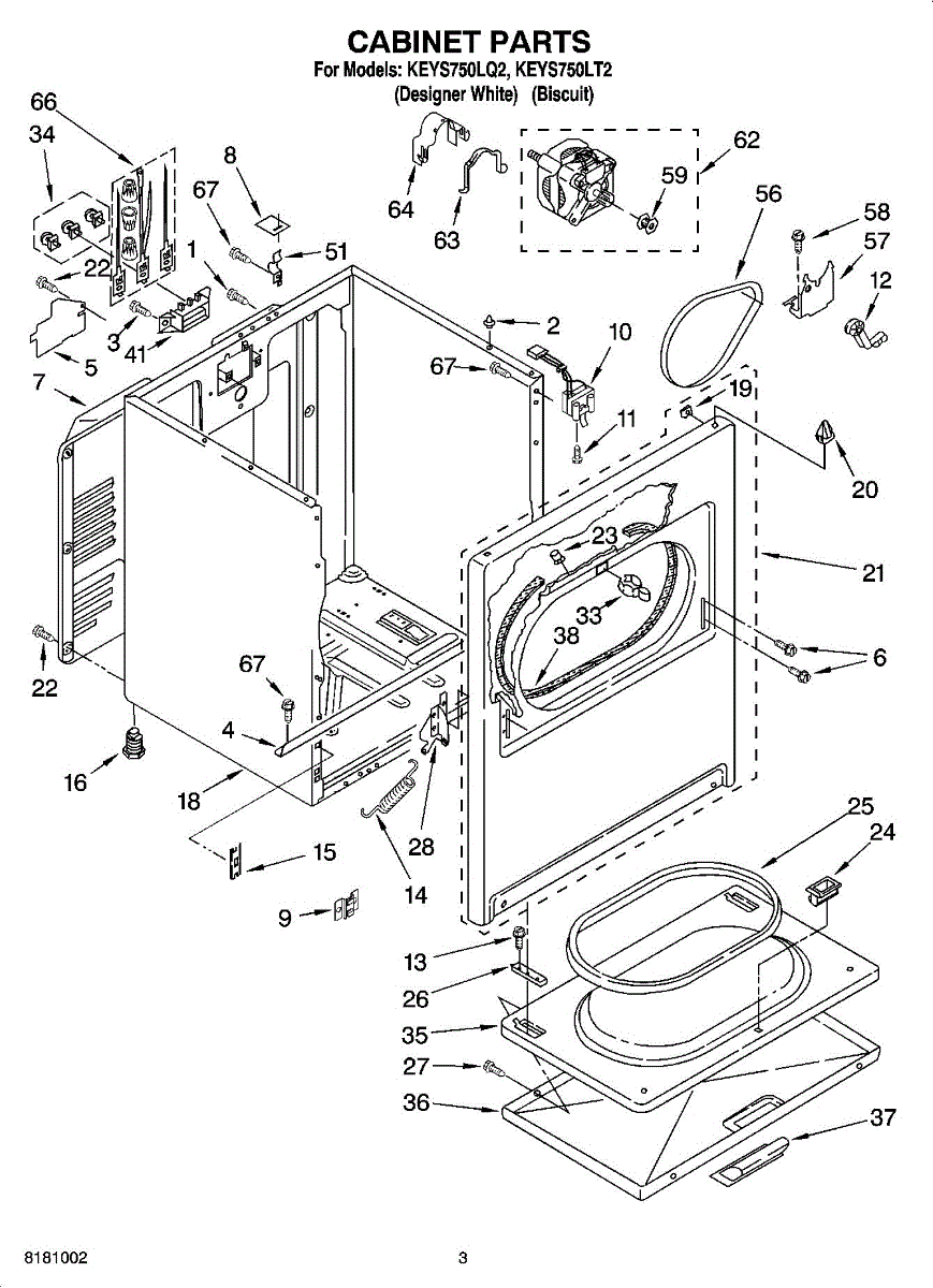 Dryer outer cabinet that houses internal components. Replace if your cabinet is rusted, dented, cracked, or damaged, compromising structural integrity.