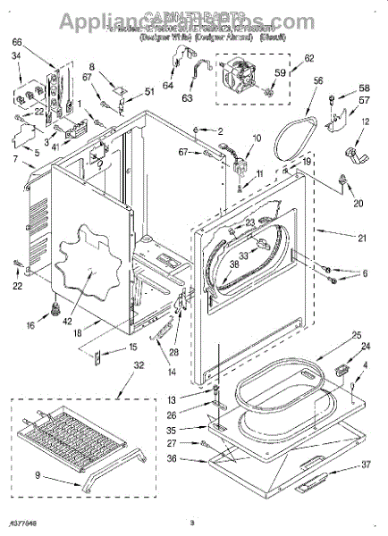 Fits all Whirlpool-made dryers (Whirlpool, Kenmore with prefix 110, Roper, KitchenAid, and Estate). Matching belt 341241 and rear support rollers 349241T. Whirlpool dryer repair manual 677818L.
