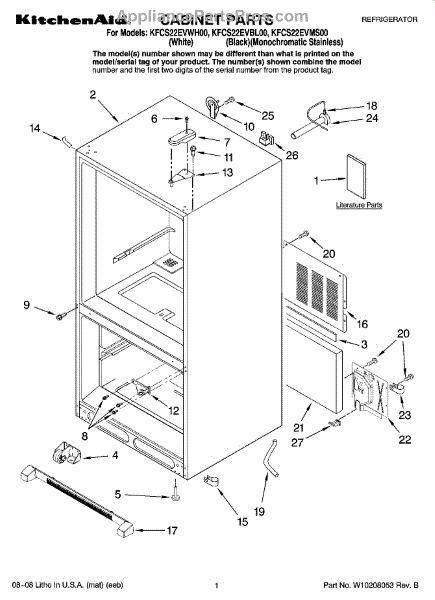 The Screw is an OEM part for Whirlpool refrigerators. This screw secures the refrigerator door hinge in place, allowing the door operates smoothly and seals properly.