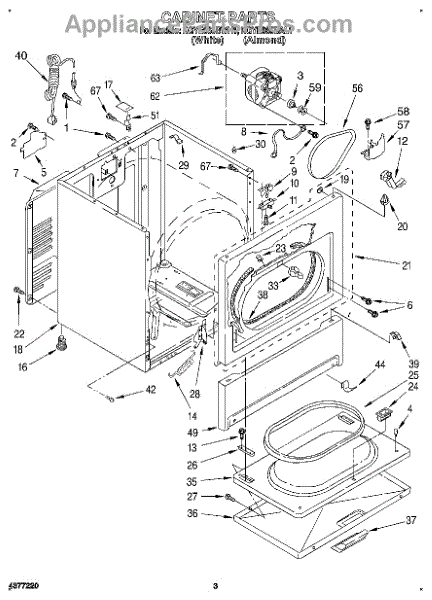 Fits all Whirlpool-made dryers (Whirlpool, Kenmore with prefix 110, Roper, KitchenAid, and Estate). Matching belt 341241 and rear support rollers 349241T. Whirlpool dryer repair manual 677818L.