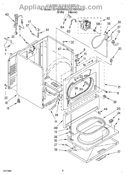 Fits all Whirlpool-made dryers (Whirlpool, Kenmore with prefix 110, Roper, KitchenAid, and Estate). Matching belt 341241 and rear support rollers 349241T. Whirlpool dryer repair manual 677818L.
