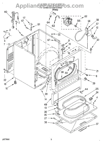 Fits all Whirlpool-made dryers (Whirlpool, Kenmore with prefix 110, Roper, KitchenAid, and Estate). Matching belt 341241 and rear support rollers 349241T. Whirlpool dryer repair manual 677818L.