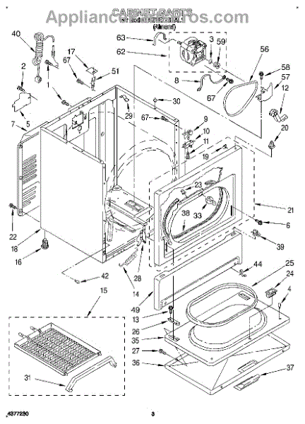 Fits all Whirlpool-made dryers (Whirlpool, Kenmore with prefix 110, Roper, KitchenAid, and Estate). Matching belt 341241 and rear support rollers 349241T. Whirlpool dryer repair manual 677818L.