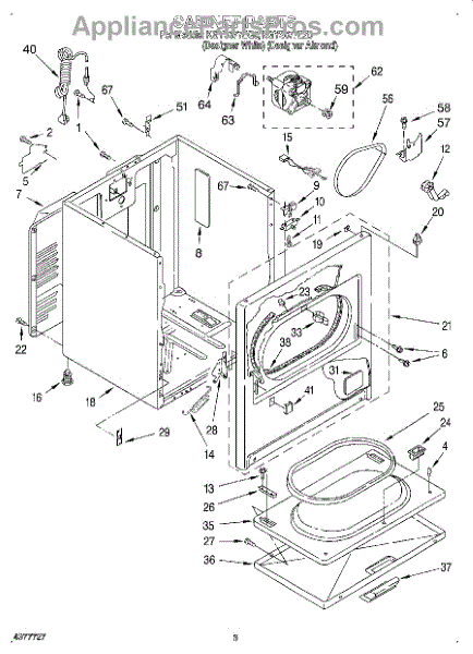 Fits all Whirlpool-made dryers (Whirlpool, Kenmore with prefix 110, Roper, KitchenAid, and Estate). Matching belt 341241 and rear support rollers 349241T. Whirlpool dryer repair manual 677818L.