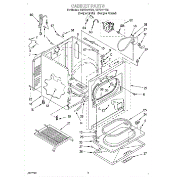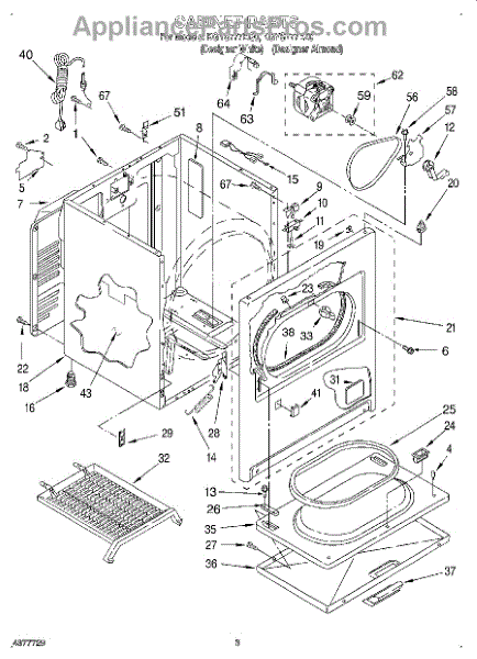 Fits all Whirlpool-made dryers (Whirlpool, Kenmore with prefix 110, Roper, KitchenAid, and Estate). Matching belt 341241 and rear support rollers 349241T. Whirlpool dryer repair manual 677818L.