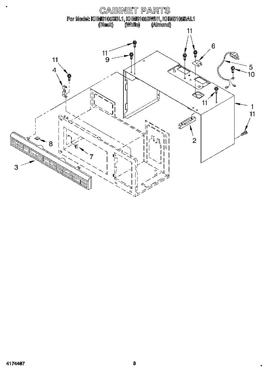 Front mounting bracket for microwave installation. Secures microwave to cabinet or wall. Replace if bent, cracked, or missing for proper support.