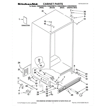 Parts for Kitchenaid KSBS25INBT03: 01 - Cabinet Parts