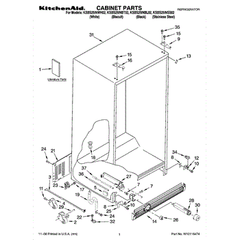 Parts for Kitchenaid KSBS25INWH02: 01 - Cabinet Parts