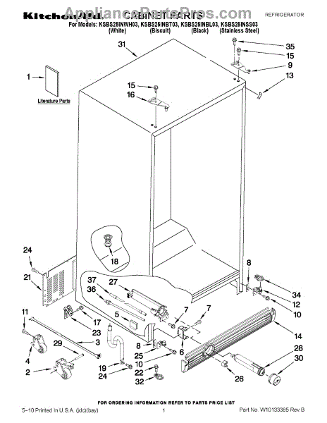 Parts for Kitchenaid KSBS25INWH03: 01 - Cabinet Parts