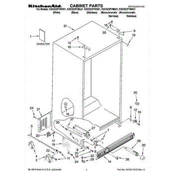 Parts for Kitchenaid KSCS23FVWH01: 01 - Cabinet Parts