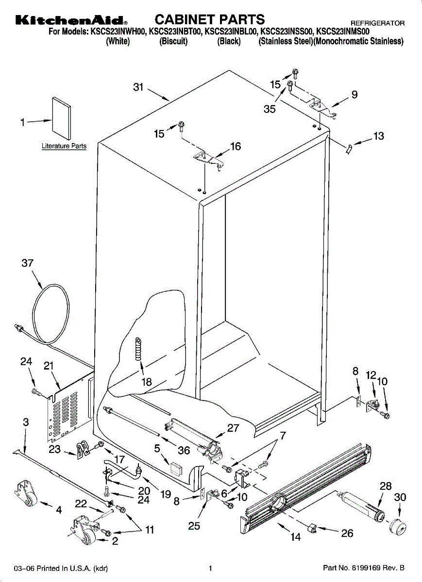 Parts for Kitchenaid KSCS23INBT00: 01 - Cabinet Parts