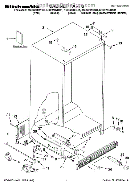 Parts for Kitchenaid KSCS23INBT01: 01 - Cabinet Parts