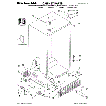 Parts for Kitchenaid KSRA22FKWH01: 01 - Cabinet Parts