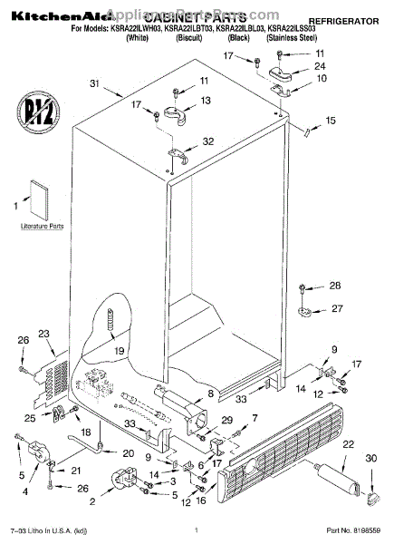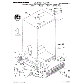 Parts for Kitchenaid KSRA22ILSS03: 01 - Cabinet Parts