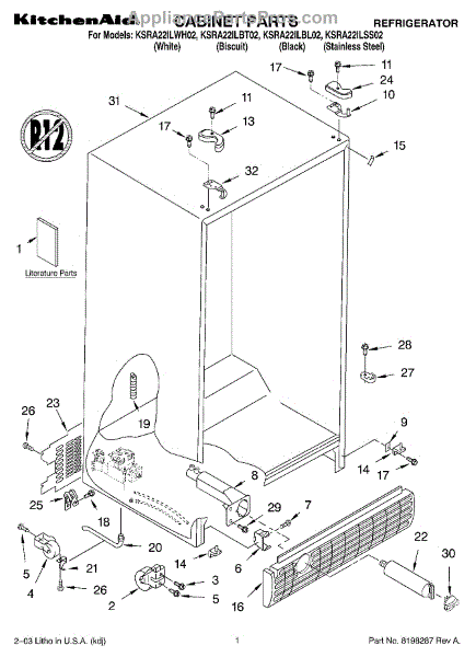 Parts for Kitchenaid KSRA22ILWH02: 01 - Cabinet Parts