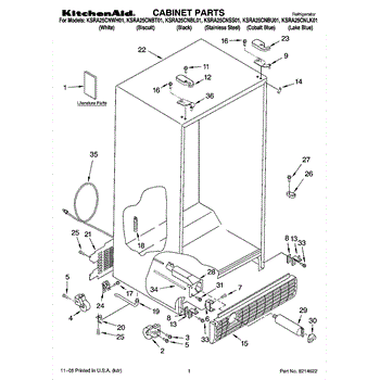 This cabinet roller assembly supports the refrigerator at the base and lets you roll the unit forward for cleaning or service. Replace a cracked or seized roller to restore smooth movement and a stable, level stance. What it does: