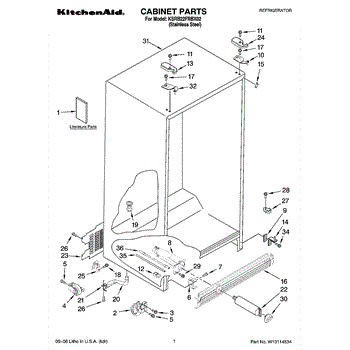 This cabinet roller assembly supports the refrigerator at the base and lets you roll the unit forward for cleaning or service. Replace a cracked or seized roller to restore smooth movement and a stable, level stance. What it does: