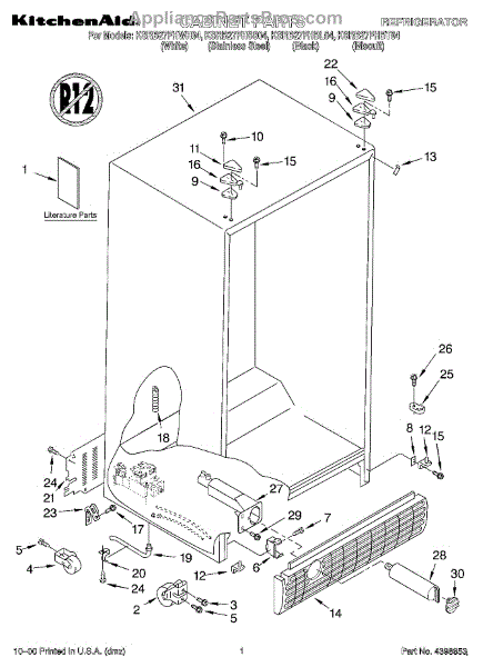 Parts for Kitchenaid KSRB27FHWH04: 01 - Cabinet, Literature Parts