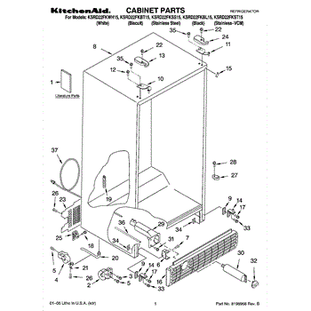 Parts for Kitchenaid KSRD22FKBT15: 01 - Cabinet Parts