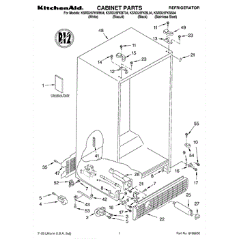 Parts for Kitchenaid KSRD25FKWH04: 01 - Cabinet Parts