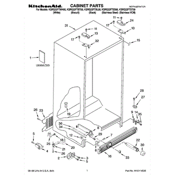 Parts for Kitchenaid KSRG22FTBT00: 01 - Cabinet Parts