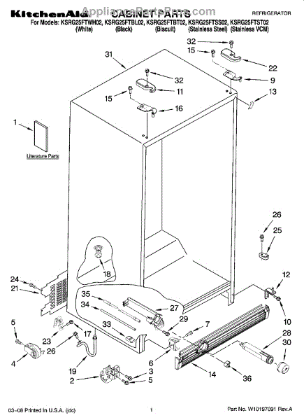 Parts for Kitchenaid KSRG25FTBT02: 01 - Cabinet Parts