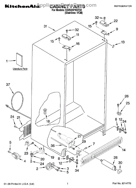Parts for Kitchenaid KSRI25FNST02: 01 - Cabinet Parts