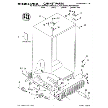 Parts for Kitchenaid KSRK25ILWH03: 01 - Cabinet Parts