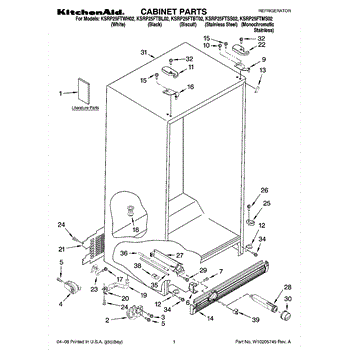 This cabinet roller assembly supports the refrigerator at the base and lets you roll the unit forward for cleaning or service. Replace a cracked or seized roller to restore smooth movement and a stable, level stance. What it does: