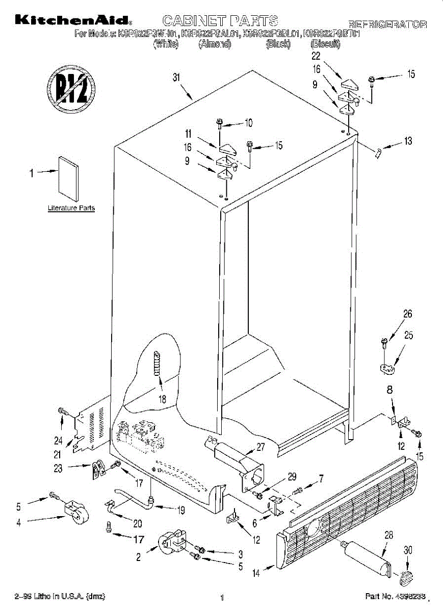 Replaces a cracked, bent, or missing refrigerator door hinge. Installs at the top of the door to secure it to the cabinet. Needed when damaged or lost.