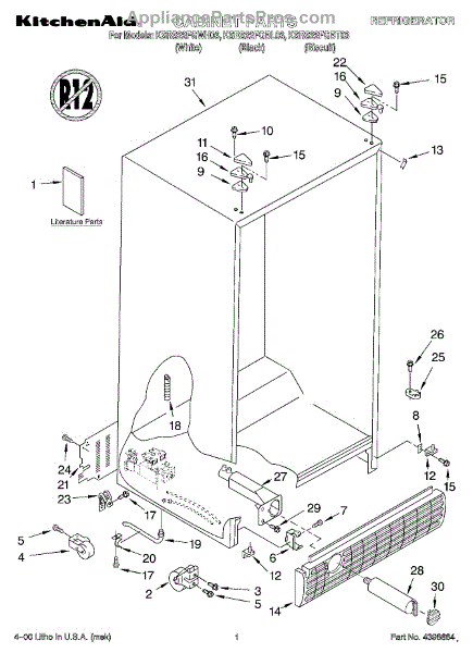 Parts for Kitchenaid KSRS22FGBT03: 01 - Cabinet, Literature Parts
