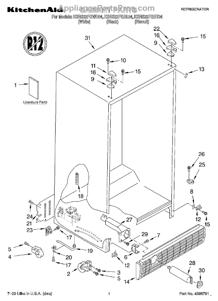 Parts for Kitchenaid KSRS22FGWH04: 01 - Cabinet, Literature Parts