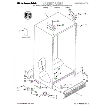 This cabinet roller assembly supports the refrigerator at the base and lets you roll the unit forward for cleaning or service. Replace a cracked or seized roller to restore smooth movement and a stable, level stance. What it does: