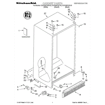 This cabinet roller assembly supports the refrigerator at the base and lets you roll the unit forward for cleaning or service. Replace a cracked or seized roller to restore smooth movement and a stable, level stance. What it does: