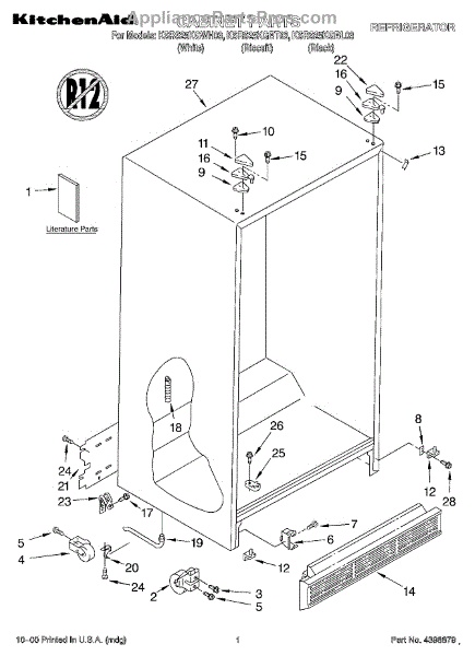 Parts for Kitchenaid KSRS25KGBT03: 01 - Cabinet, Literature Parts