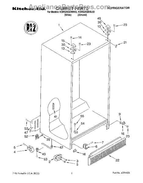 Parts for Kitchenaid KSRS25QDWH03: 01 - Cabinet Parts