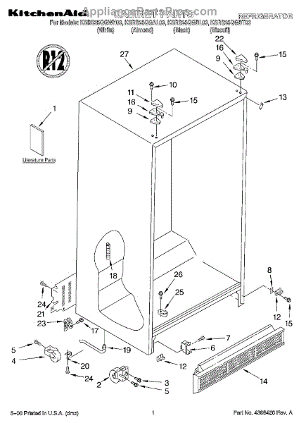 Parts for Kitchenaid KSRS25QGAL03: 01 - Cabinet, Literature Parts