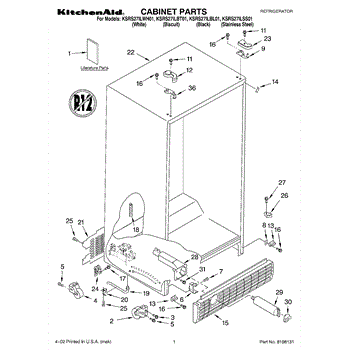 Parts for Kitchenaid KSRS27ILBT01: 01 - Cabinet, Literature Parts