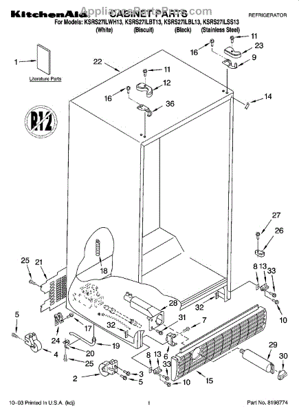This cabinet roller assembly supports the refrigerator at the base and lets you roll the unit forward for cleaning or service. Replace a cracked or seized roller to restore smooth movement and a stable, level stance. What it does: