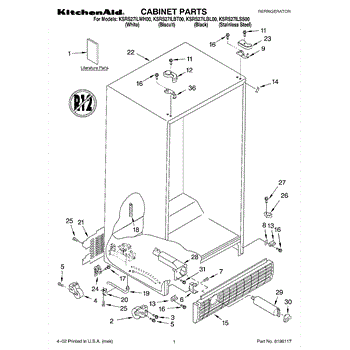 Parts for Kitchenaid KSRS27ILSS00: 01 - Cabinet, Literature Parts