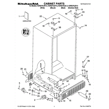 This cabinet roller assembly supports the refrigerator at the base and lets you roll the unit forward for cleaning or service. Replace a cracked or seized roller to restore smooth movement and a stable, level stance. What it does: