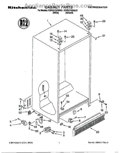 Parts for Kitchenaid KSRS27QDAL01: 01 - Cabinet Parts
